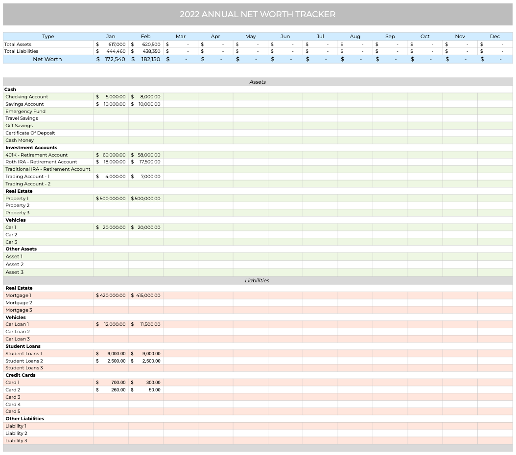 Annual Net Worth Tracker Template