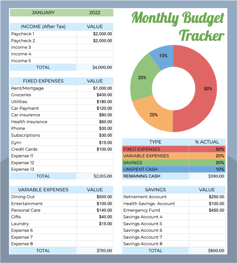Monthly Budget Tracker Template