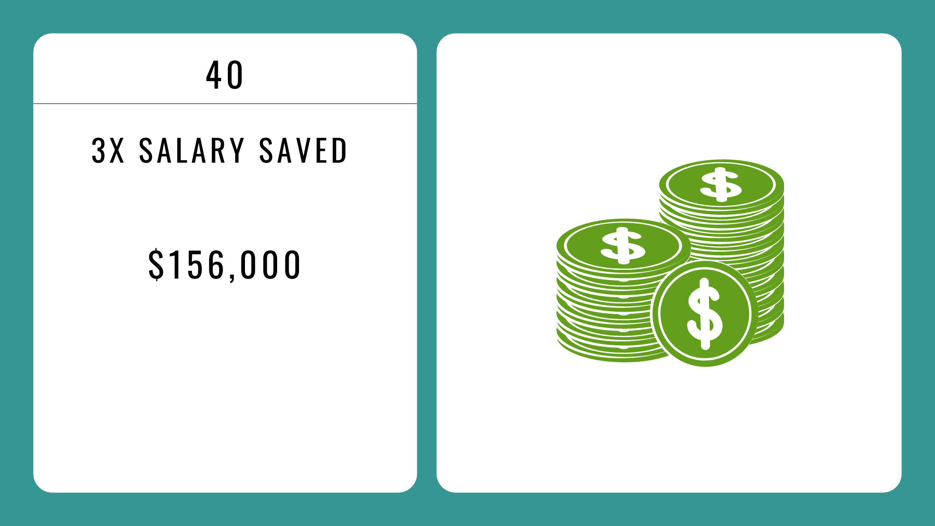 You should have 2-3 times your salary by the age of 40.Based on a $52,000 salary, you should have around $156,000.