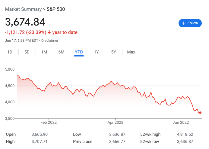 This week, the S&P 500 has a decline of -23% from the start of this year. This officially means that we are in a bear market, which is viewed negatively by most people because it means that our economy is slowing down.